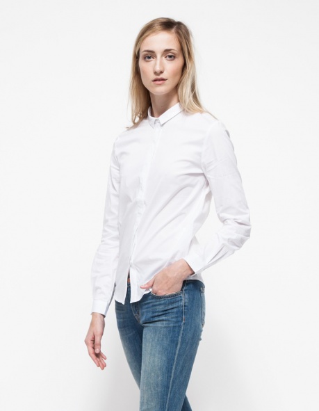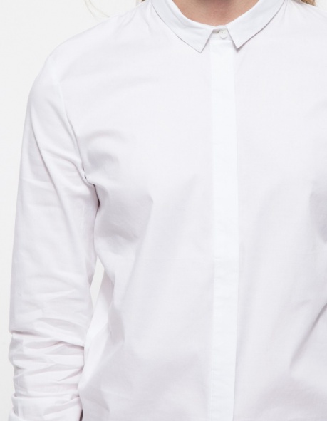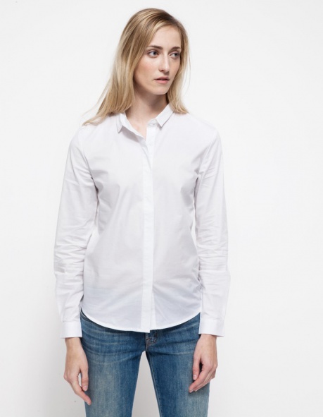 From Stelen, a button front blouse with a geometric cut hemline. Features a rounded front hem, a longer back hem, cuffed sleeves, and a pointed collar ...Read more