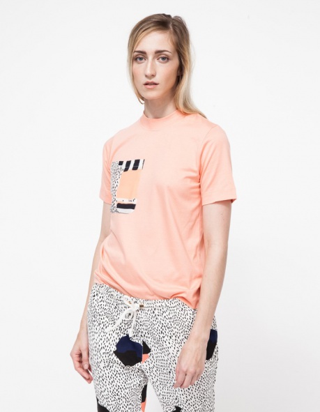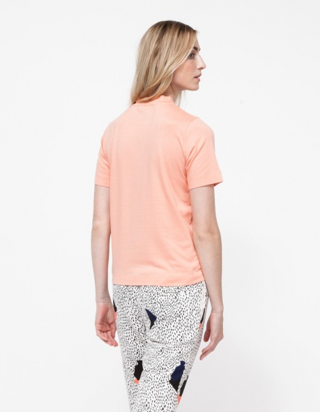 From Stelen, a button front blouse with a geometric cut hemline. Features a rounded front hem, a longer back hem, cuffed sleeves, and a pointed collar with a relaxed, boxy fit.