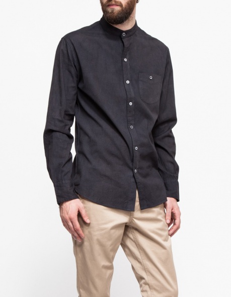 From Stelen, a button front blouse with a geometric cut hemline. Features a rounded front hem, a longer back hem, cuffed sleeves, and a pointed collar with a relaxed, boxy fit.